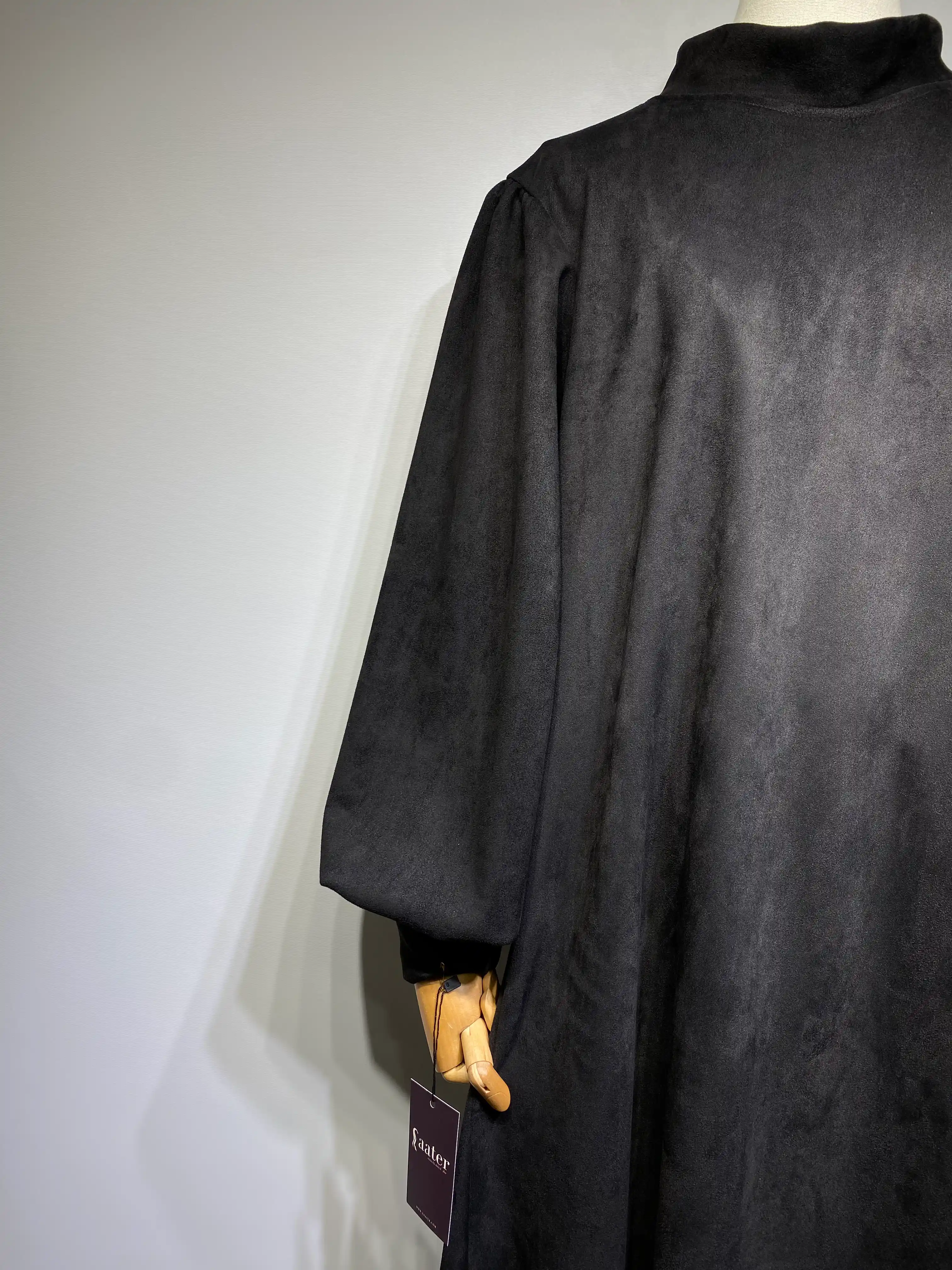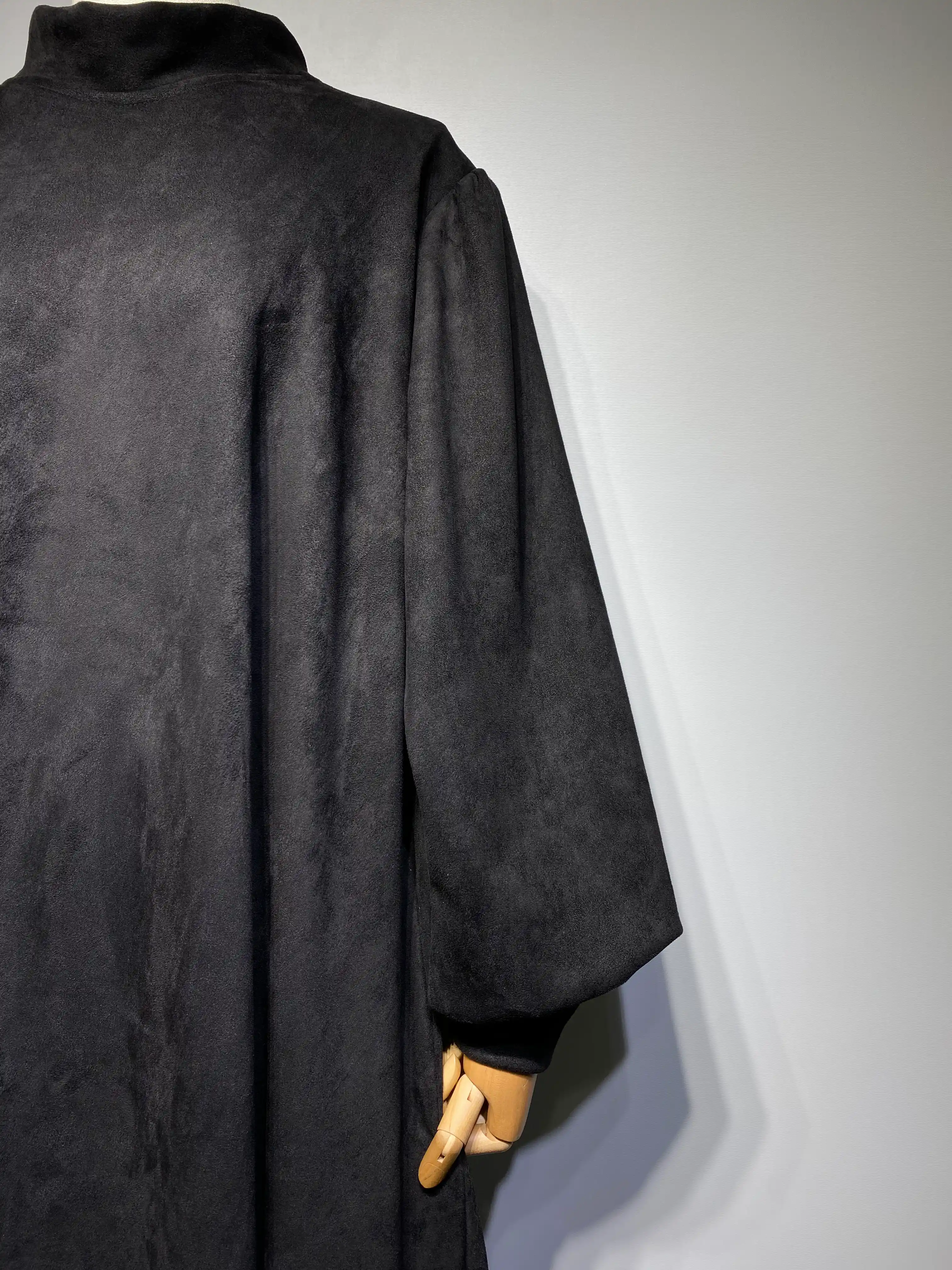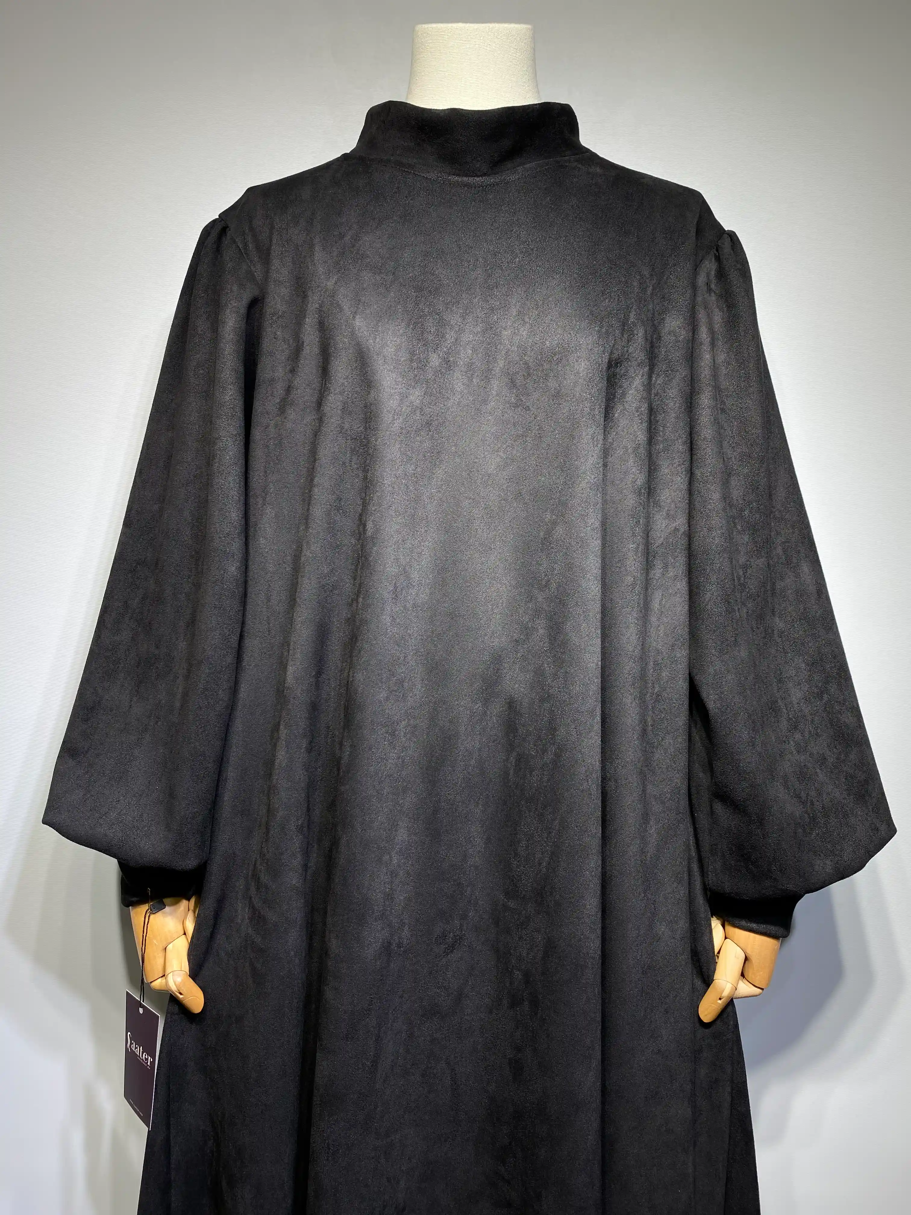 فستان سندريلا من ساتر تصميم ملكي يخطف الأنظار، يتميز بقصة انسيابية واسعة وأكمام فرونس مرسومة من الأكتاف تمنحكِ حضوراً مهيباً يشبه إطلالات الأميرات. مصنوع من خامة سويد شمواه عالية الجودة، ليجمع بين نعومة الملمس وفخامة المظهر. قطعة فريدة صُممت لتمنحكِ الدفء والملكية، مع لمسة من الرقي الإسلامي الكلاسيكي الذي لا يقدُم أبداً.