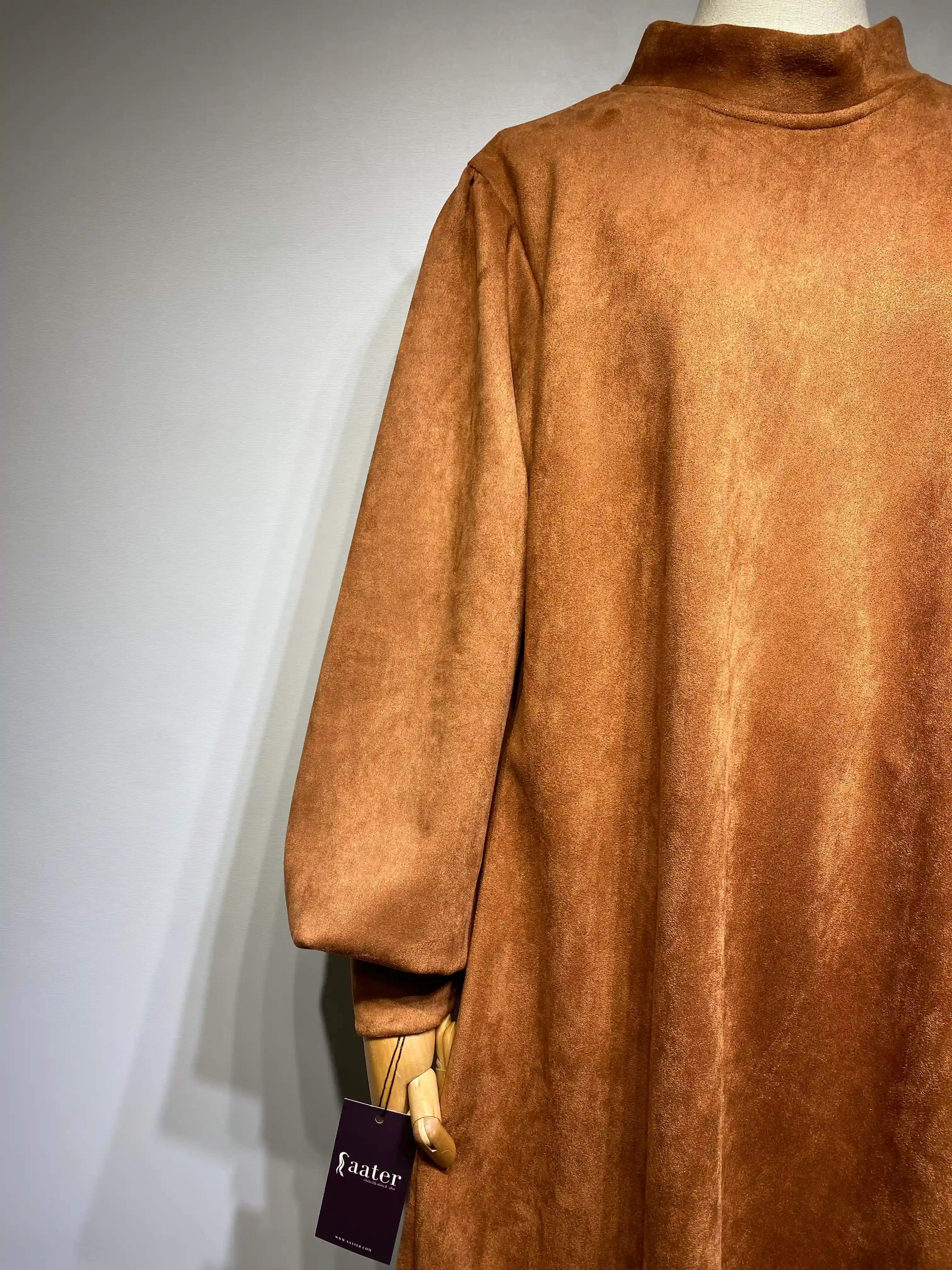فستان سندريلا من ساتر تصميم ملكي يخطف الأنظار، يتميز بقصة انسيابية واسعة وأكمام فرونس مرسومة من الأكتاف تمنحكِ حضوراً مهيباً يشبه إطلالات الأميرات. مصنوع من خامة سويد شمواه عالية الجودة، ليجمع بين نعومة الملمس وفخامة المظهر. قطعة فريدة صُممت لتمنحكِ الدفء والملكية، مع لمسة من الرقي الإسلامي الكلاسيكي الذي لا يقدُم أبداً.