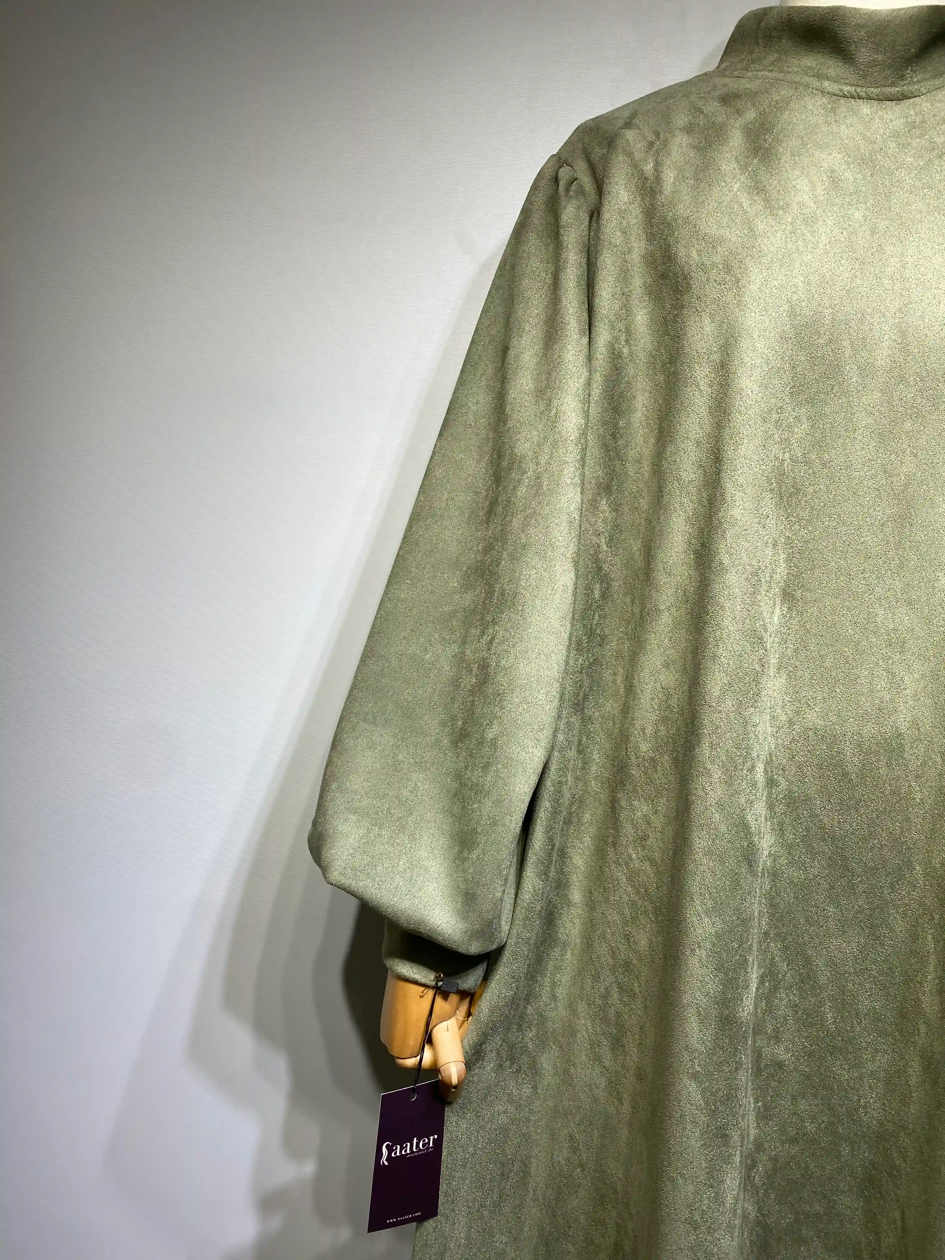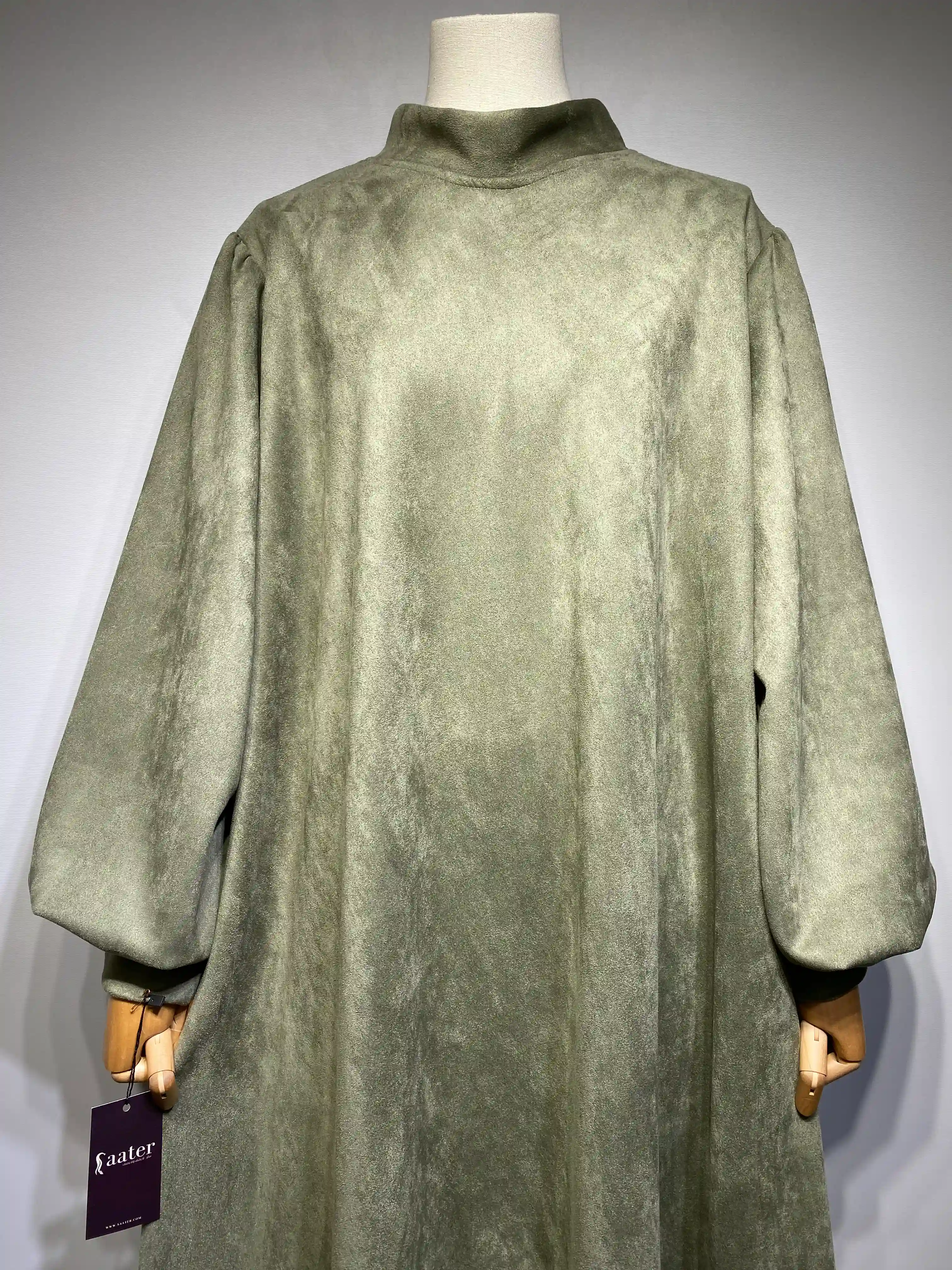 فستان سندريلا من ساتر تصميم ملكي يخطف الأنظار، يتميز بقصة انسيابية واسعة وأكمام فرونس مرسومة من الأكتاف تمنحكِ حضوراً مهيباً يشبه إطلالات الأميرات. مصنوع من خامة سويد شمواه عالية الجودة، ليجمع بين نعومة الملمس وفخامة المظهر. قطعة فريدة صُممت لتمنحكِ الدفء والملكية، مع لمسة من الرقي الإسلامي الكلاسيكي الذي لا يقدُم أبداً.