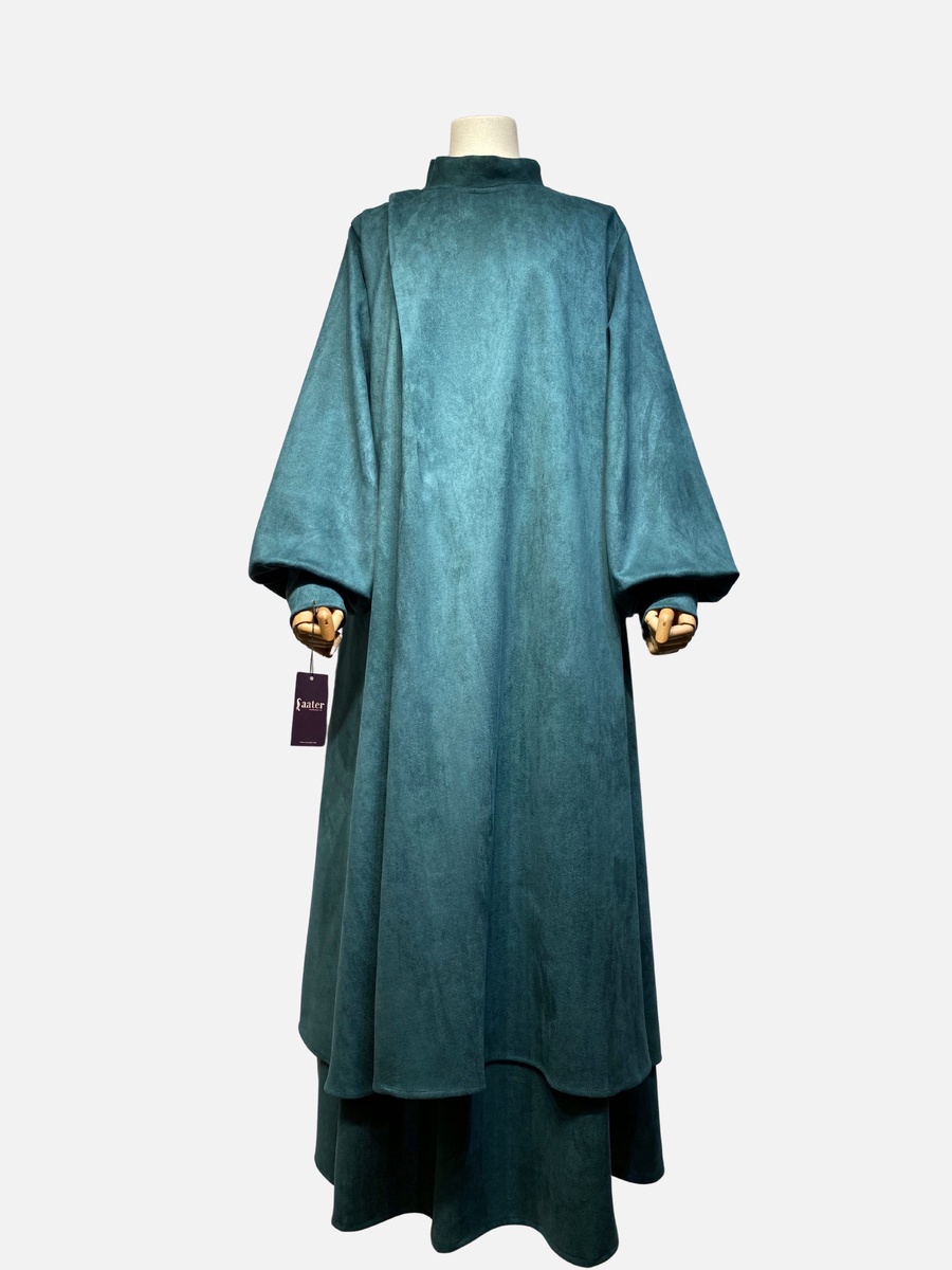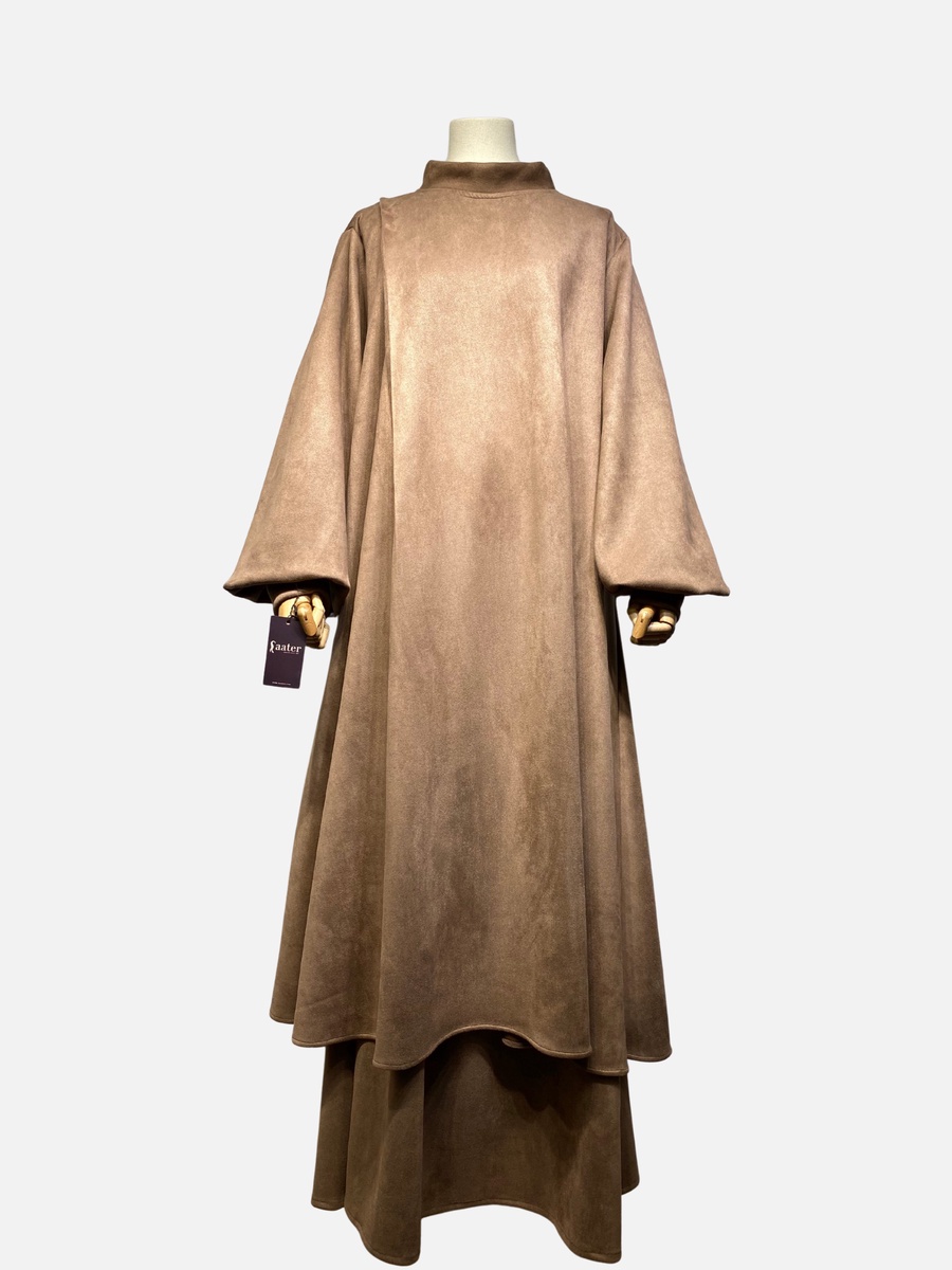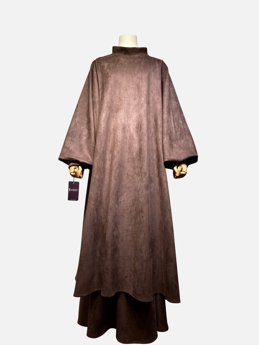 تصميم فريد يجمع بين الاحتشام والأناقة العصرية، مكون من قطعتين (ميني دريس بكسرة جانبية مميزة من الكتف وجيبة من نفس الخامة واللون)، ليمنحكِ إطلالة متكاملة وانسيابية. مصنوع من خامة سويد شمواه عالية الجودة بملمس ناعم وفخم يضيف لمسة من الرقي والتميز على مظهرك. خامة الإدناء تمنح إحساساً دافئاً ومريحاً، ليكون خيارك العملي والأنيق في الأوقات الباردة.