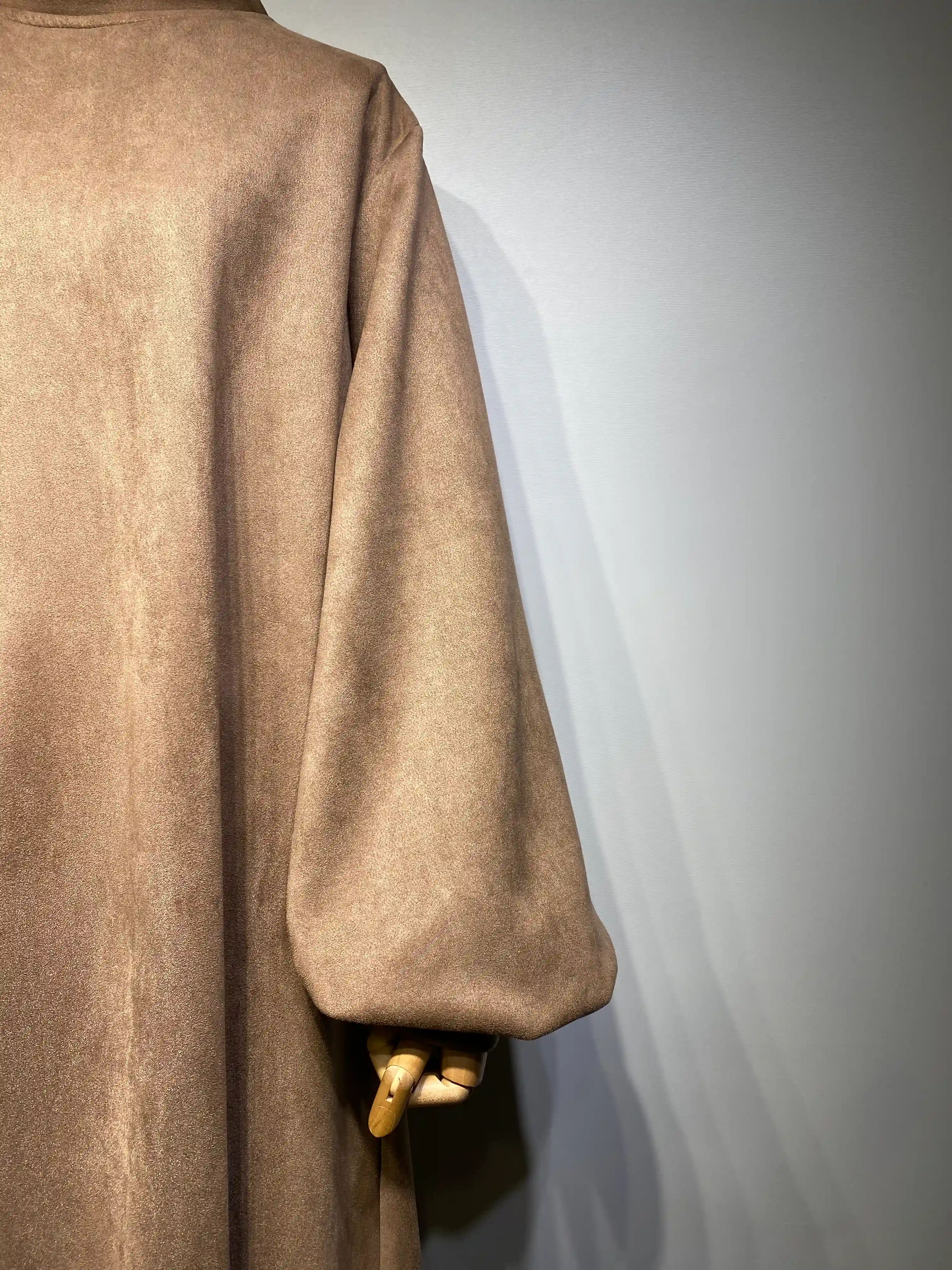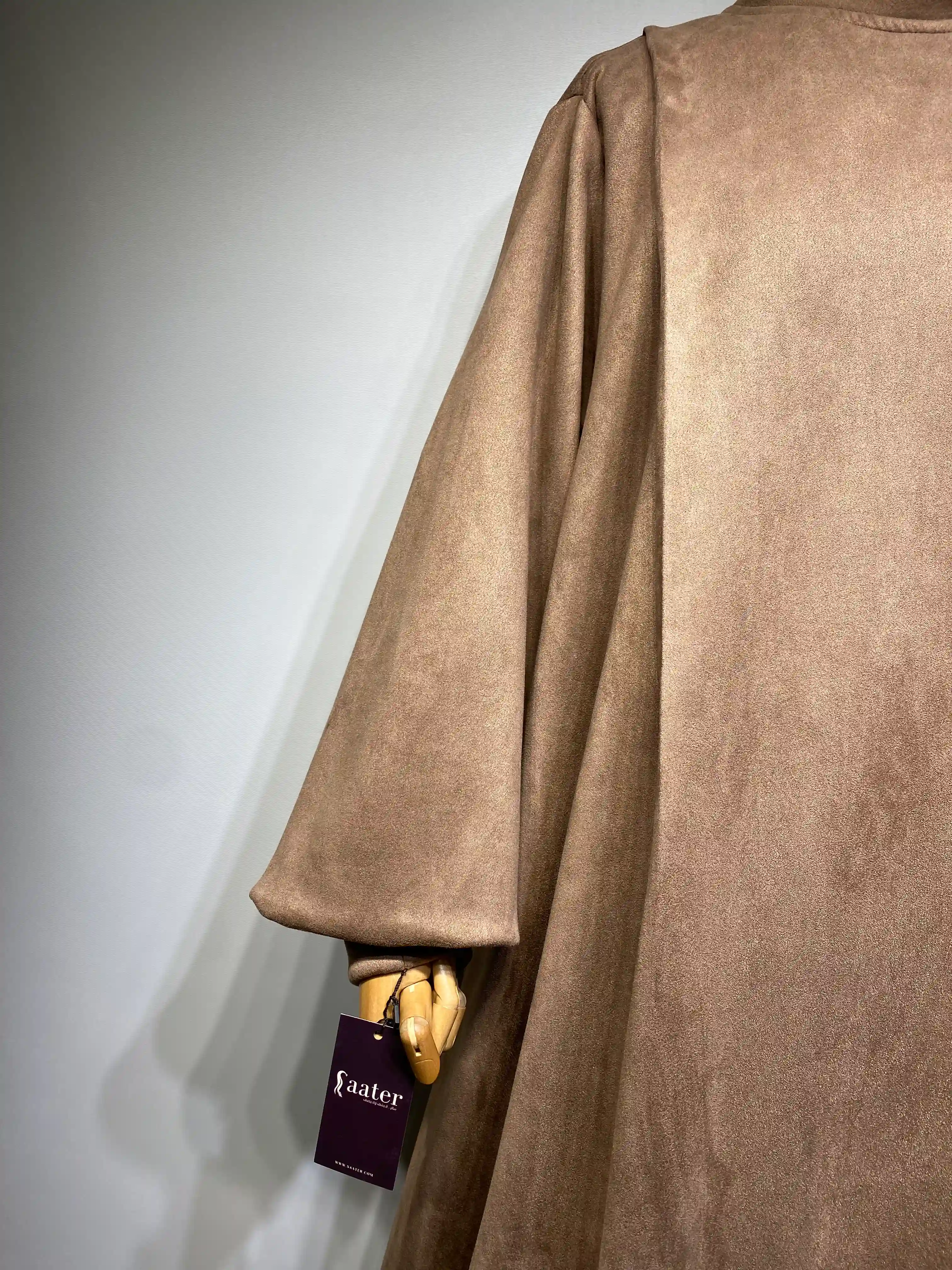إدناء دانيه من ساتر تصميم فريد يجمع بين الاحتشام والأناقة العصرية، مكون من قطعتين (ميني دريس بكسرة جانبية مميزة من الكتف وجيبة من نفس الخامة واللون)، ليمنحكِ إطلالة متكاملة وانسيابية. مصنوع من خامة سويد شمواه عالية الجودة بملمس ناعم وفخم يضيف لمسة من الرقي والتميز على مظهرك. خامة الإدناء تمنح إحساساً دافئاً ومريحاً، ليكون خيارك العملي والأنيق في الأوقات الباردة.