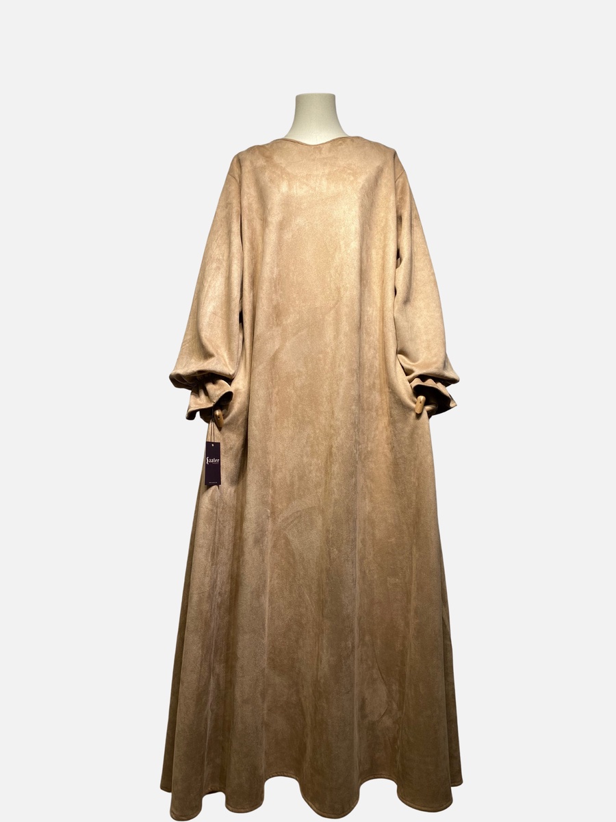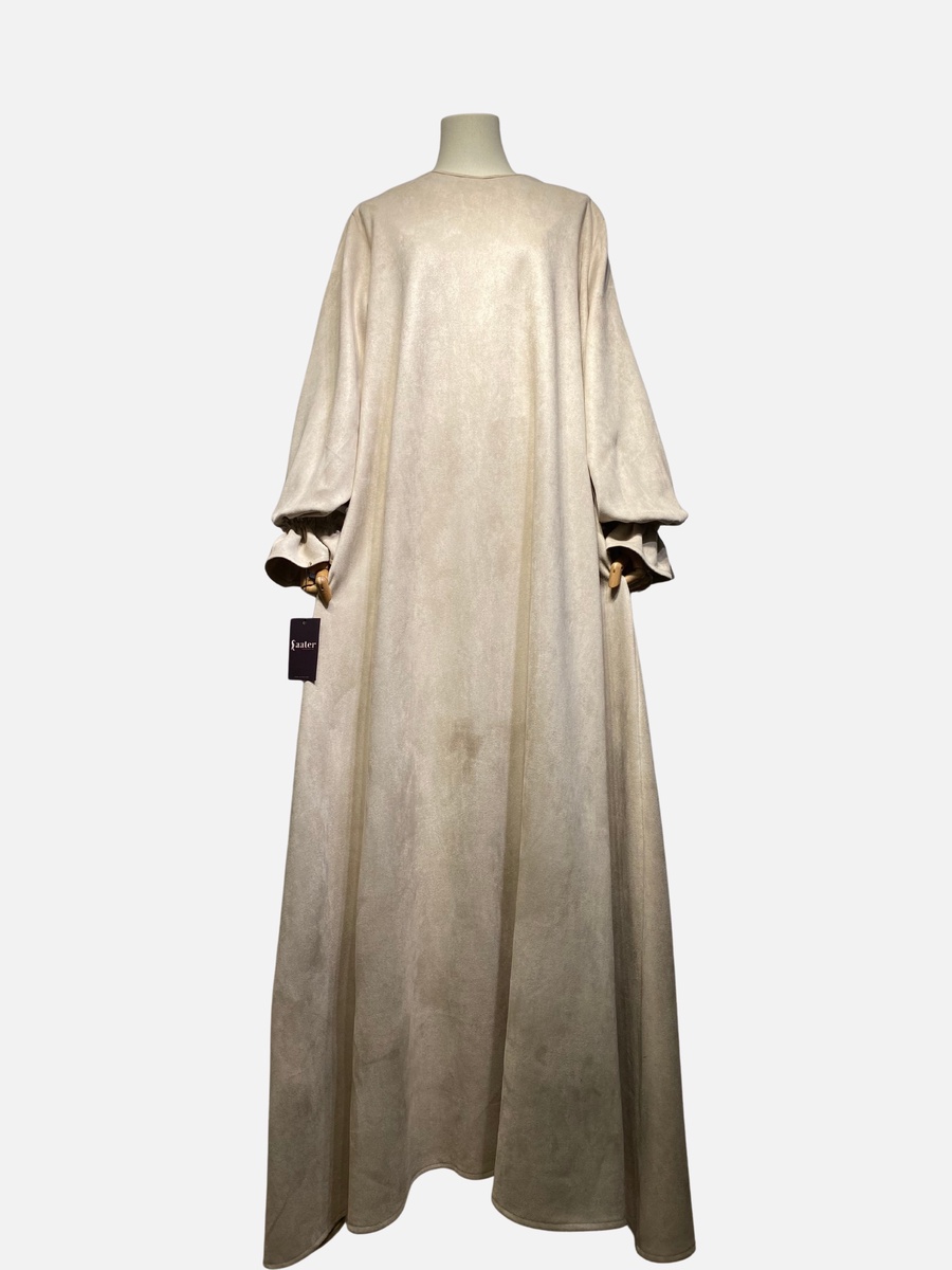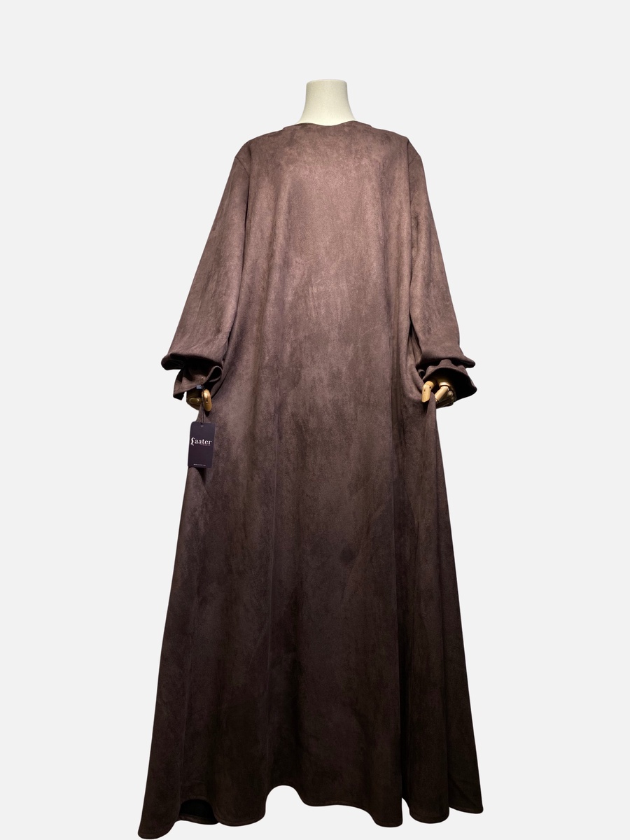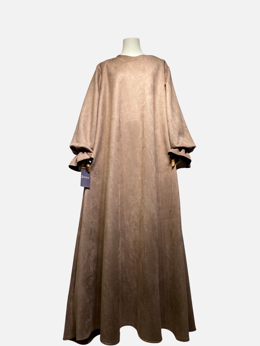 مصنوع من خامة سويد شمواه عالية الجودة، يمنحكِ الراحة والدفء في آن واحد. قصة واسعة وانسيابية تضمن لكِ الوقار، مع تفاصيل صغيرة تصنع فرقاً كبيراً في أناقتك.