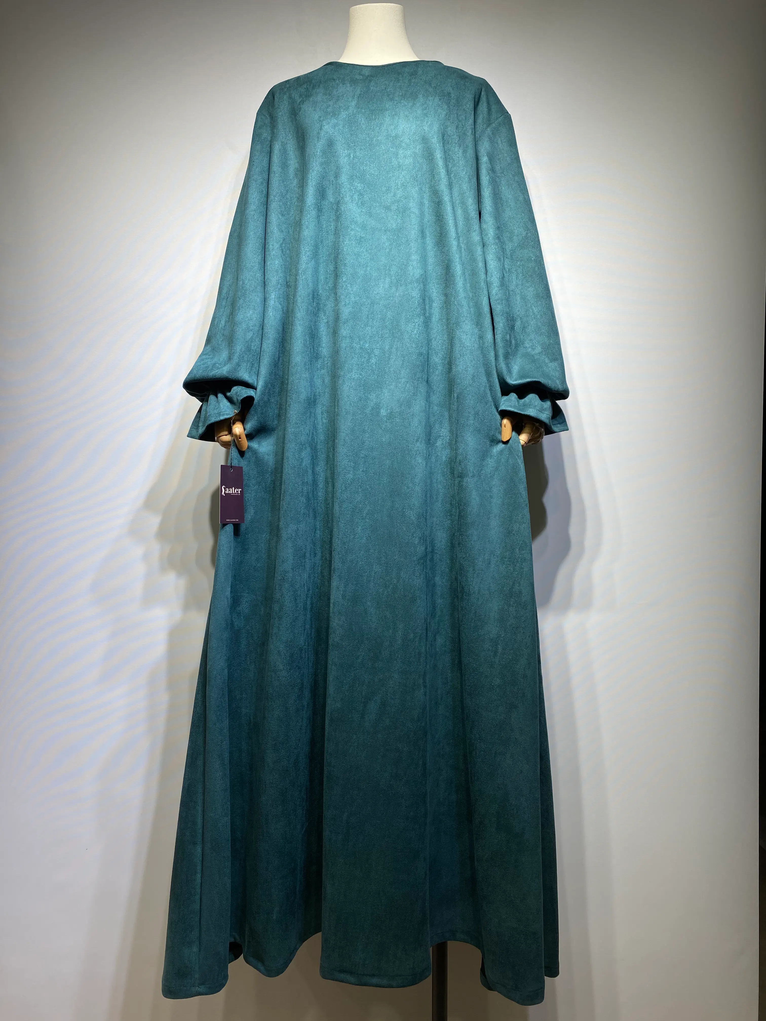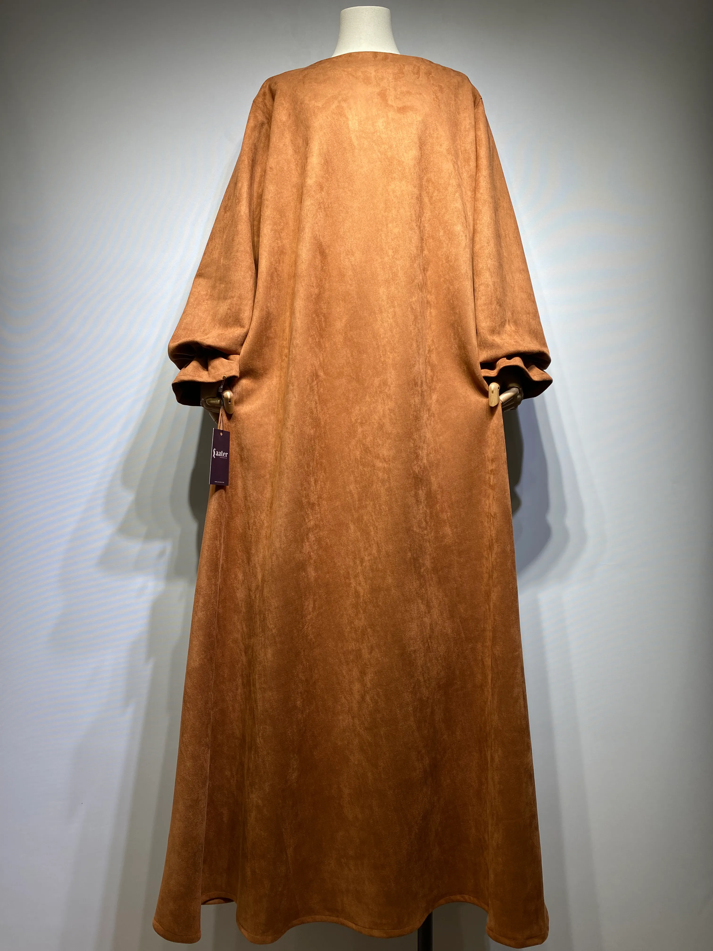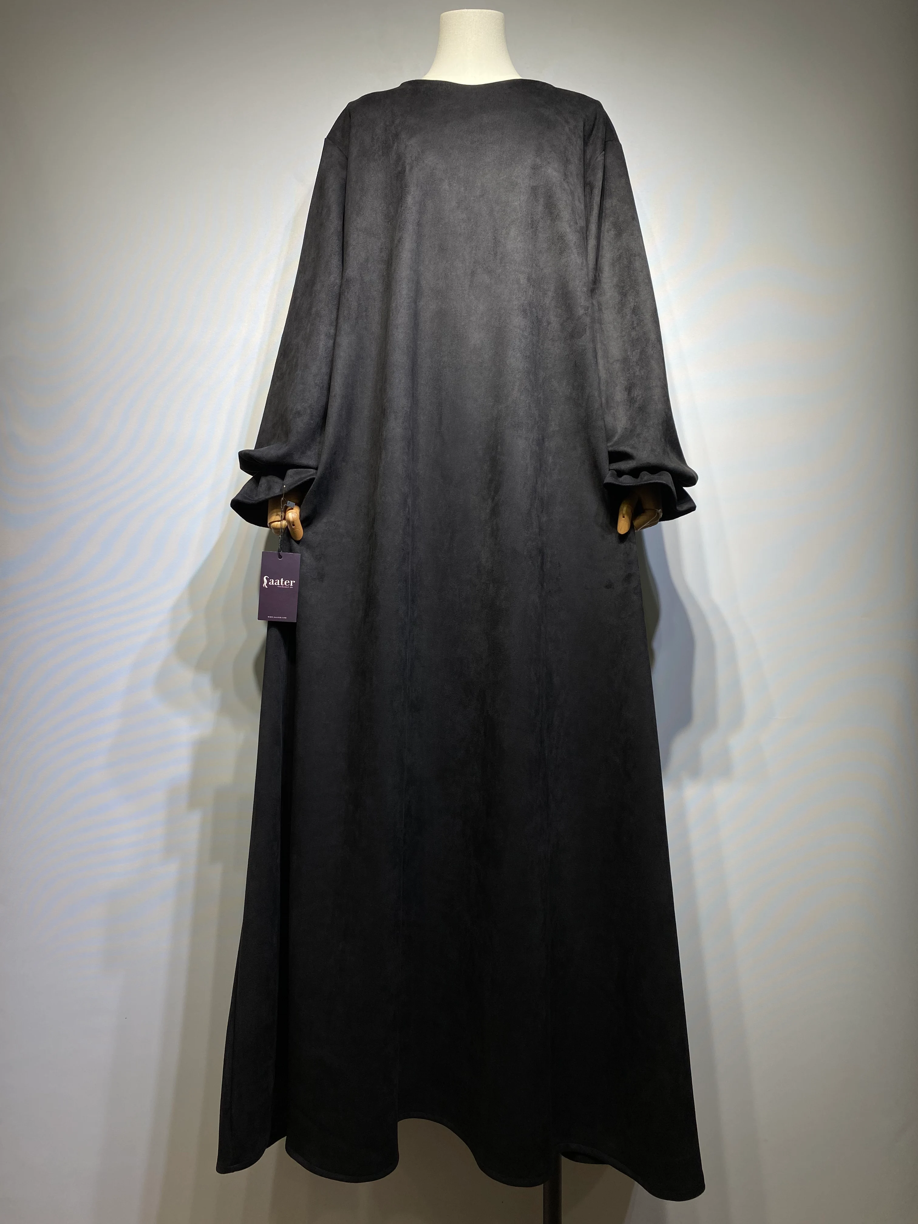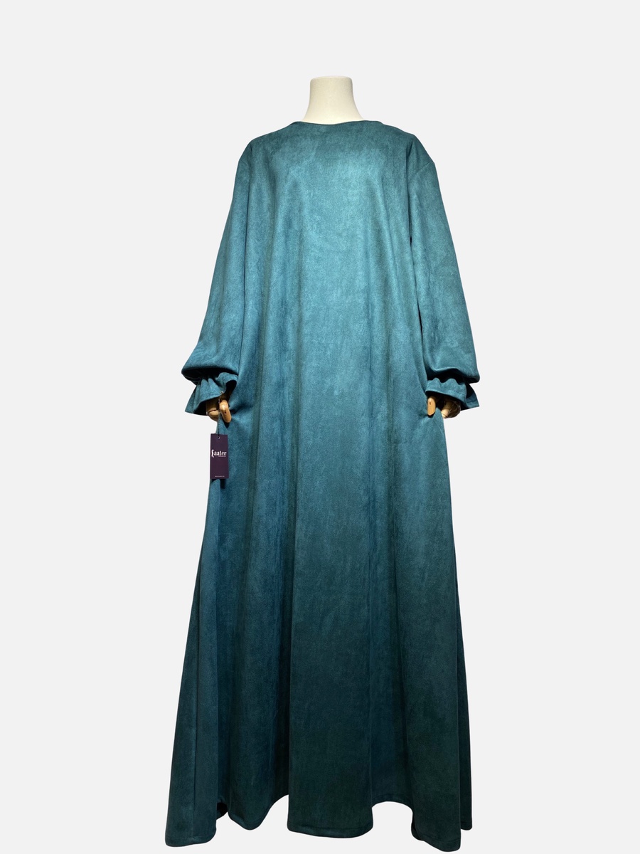 مصنوع من خامة سويد شمواه عالية الجودة، يمنحكِ الراحة والدفء في آن واحد. قصة واسعة وانسيابية تضمن لكِ الوقار، مع تفاصيل صغيرة تصنع فرقاً كبيراً في أناقتك.